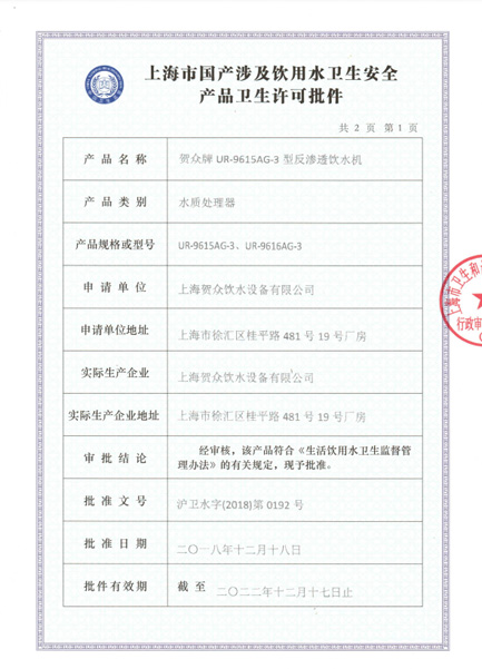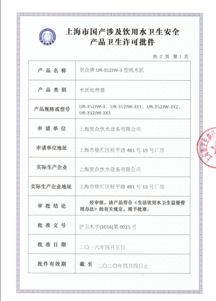 東莞市賀一飲水設備有限公司為賀眾牌飲水設備東莞授權總代理商,證號24019,負責上海賀眾飲水設備所產制的賀眾牌相關產品的銷售以及售后服務。